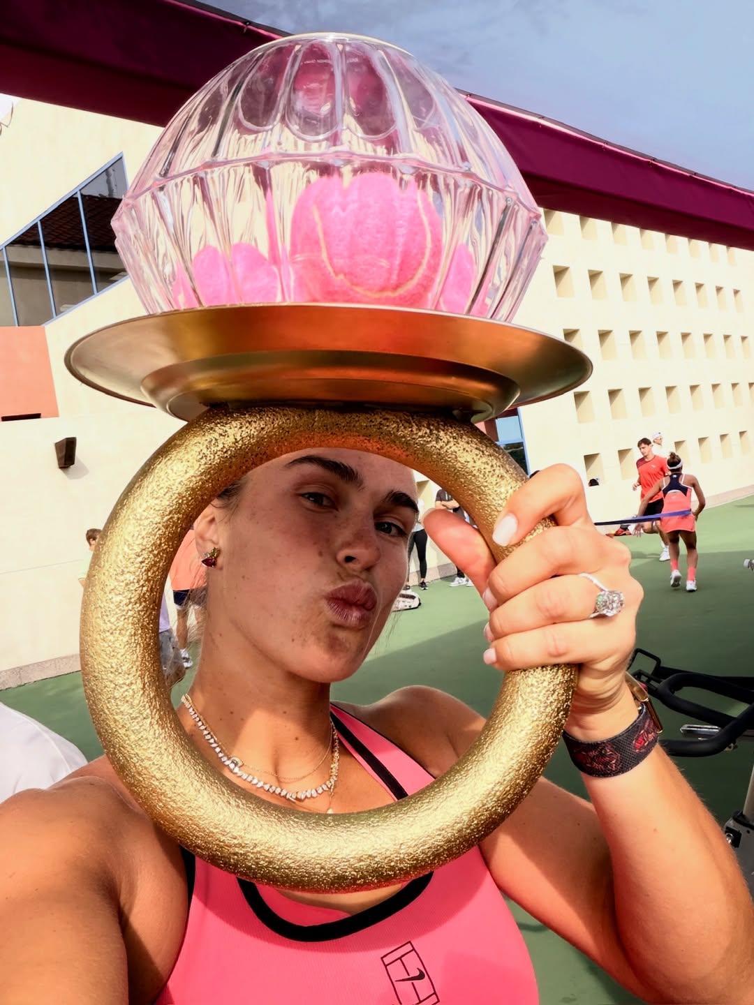 Αμέσως μετά τη νίκη της στον ημιτελικό κόντρα στην Ελενα Ριμπάκινα, ένας πιτσιρικάς πλησίασε τις κερκίδες και της ζήτησε να τον παντρευτεί, χαρίζοντάς της ένα πολύχρωμο δαχτυλίδι! Η Αρίνα, γελώντας, δέχτηκε το δώρο, το φόρεσε αμέσως και δεν σταμάτησε να το «μοστράρει» με καμάρι ακόμα και στη συνέντευξη Τύπου!