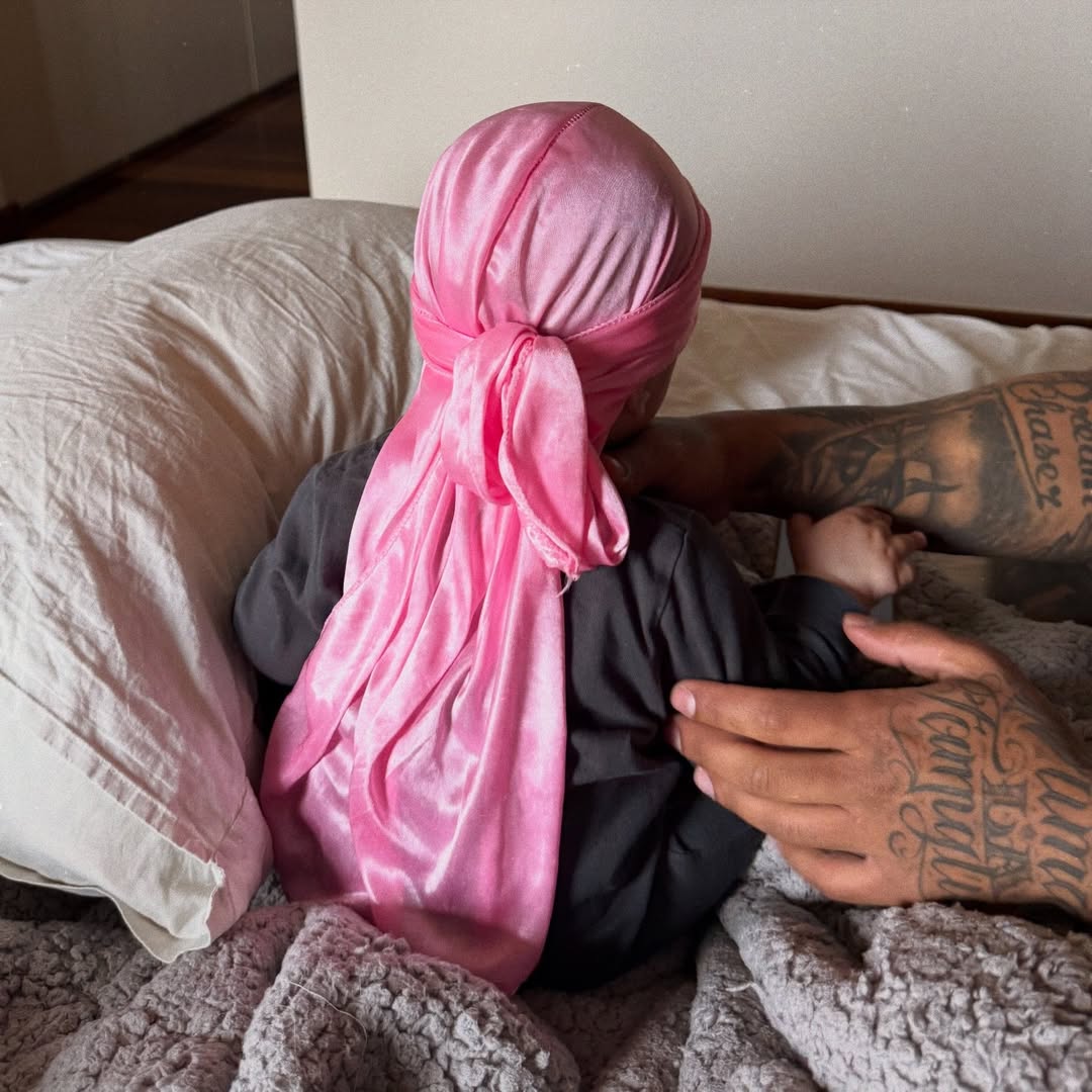 Σε ένα από τα στιγμιότυπα, μάλιστα, τον βλέπουμε να έχει δέσει ένα ροζ μαντίλι στο κεφάλι του μικρού, σε μια εικόνα γεμάτη χαμόγελο και παιχνιδιάρικη διάθεση.