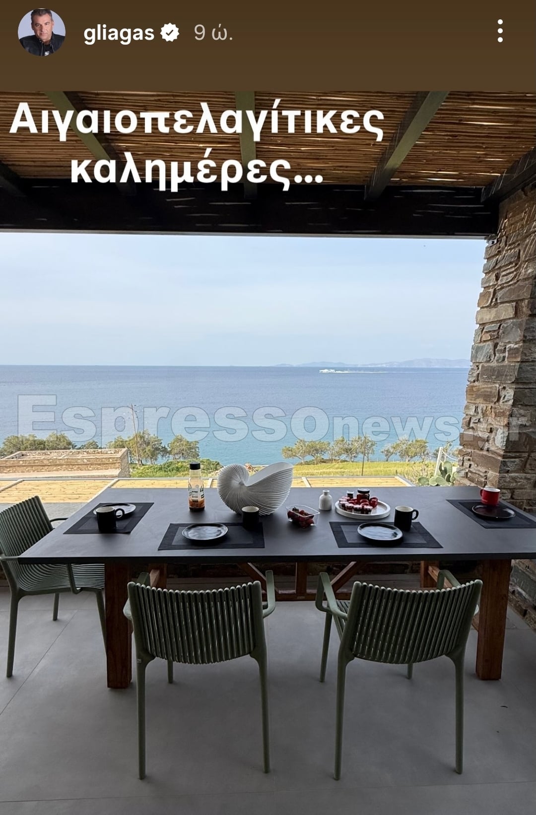 Φέτος πέρασε το Πάσχα στο νησί και χαλάρωσε μακριά από την Αθήνα και τις επαγγελματικές του υποχρεώσεις. Μάλιστα δημοσίευσε φωτογραφίες από το σπίτι του με την υπέροχη θέα καθώς βγαίνοντας στο μπαλκόνι βλέπεις το απέραντο γαλάζιο.