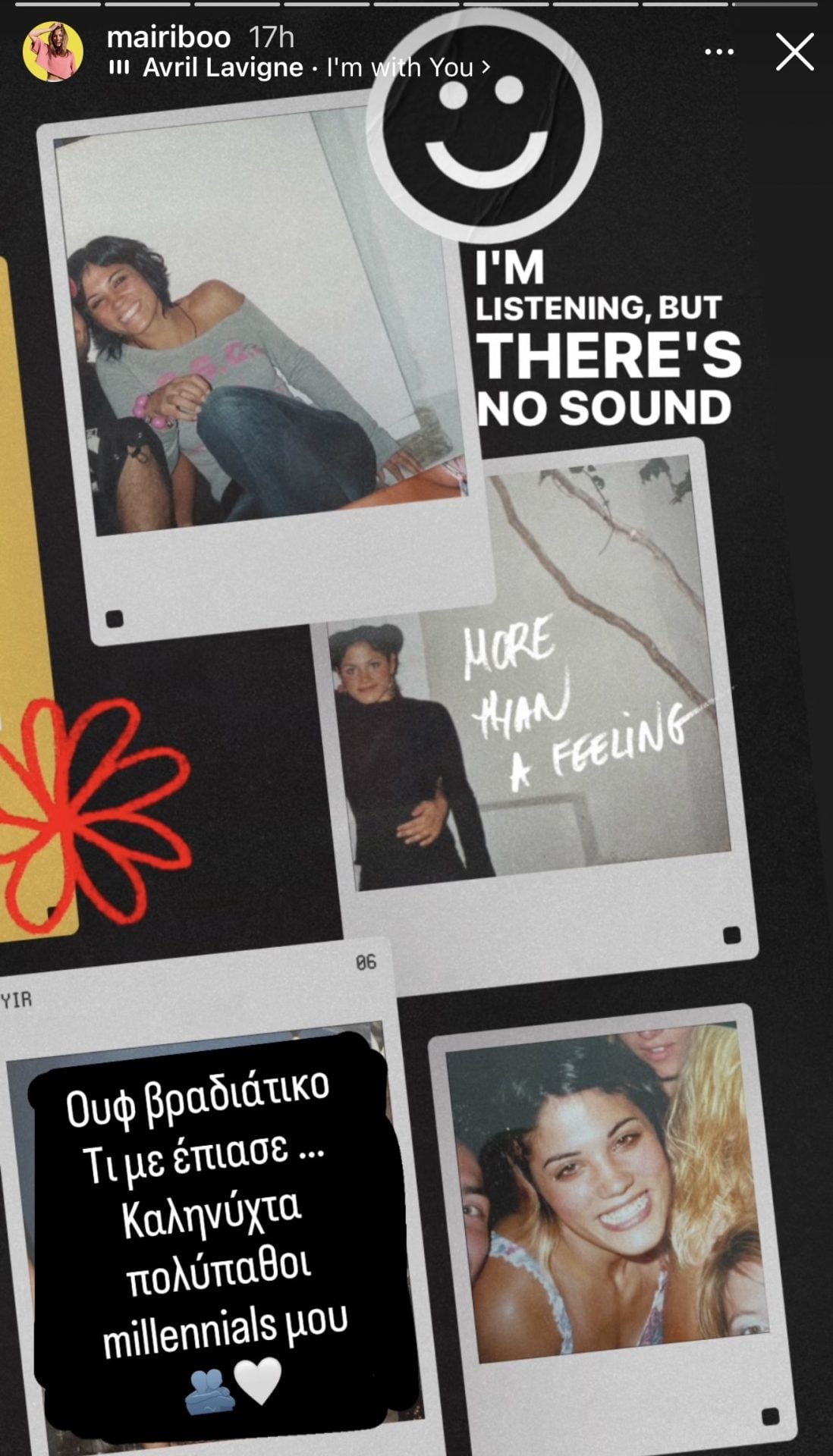 Κλείνοντας τη σειρά των αναρτήσεων, η Μαίρη Συνατσάκη έγραψε: «Ουφ βραδιάτικο τι με έπιασε… Καληνύχτα πολύπαθοι millennials μου», συνοδεύοντας τις φωτογραφίες με διάθεση νοσταλγίας.