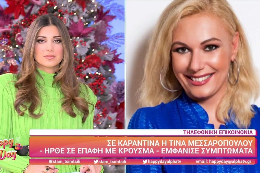 Η Τίνα Μεσσαροπούλου απουσίαζε από τη σημερινή εκπομπή «Happy Day» καθώς ήρθε σε επαφή με κρούσμα κορονοϊού.