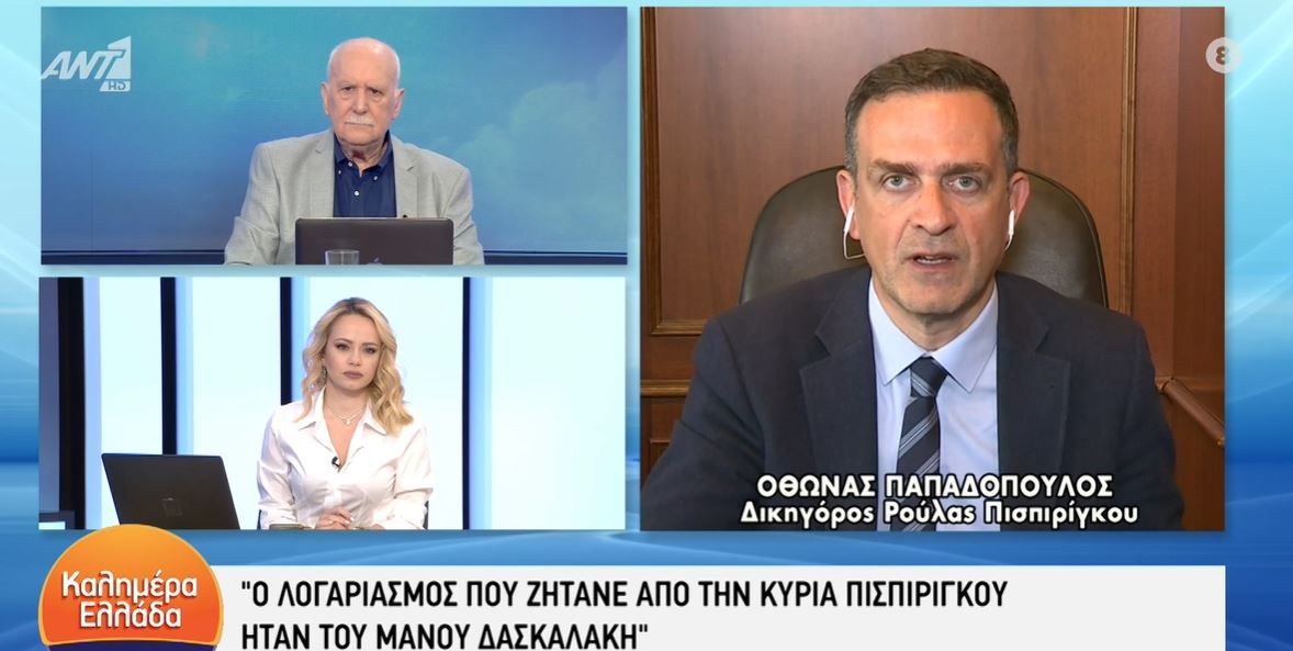 Στην εκπομπή «Καλημέρα Ελλάδα» μίλησε ο δικηγόρος της Ρούλας Πισπιρίγκου, Όθωνας Παπαδόπουλος.