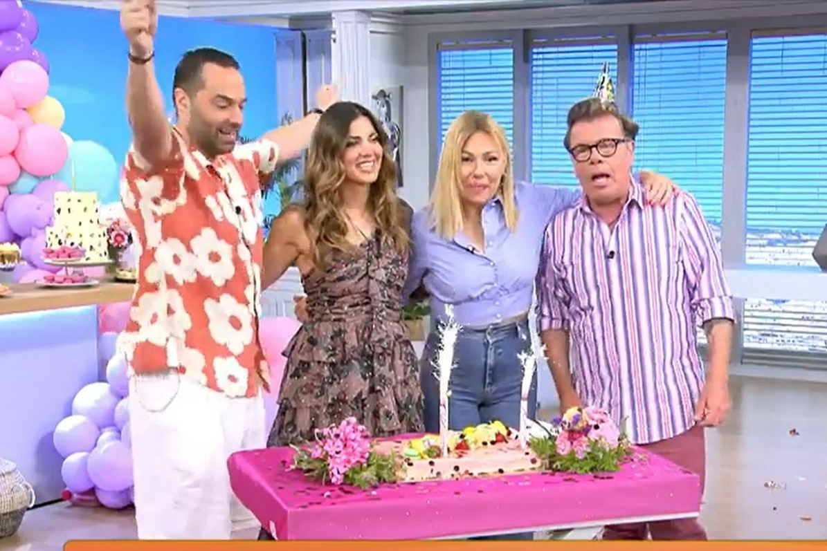 Με τους συνεργάτες της έσβησε τα κεράκια στη γενέθλια τούρτα της και είπε: «Ευχαριστώ πολύ! Μαζί σας νιώθω ξανά τον ενθουσιασμό που νιώθουν τα παιδιά στα γενέθλιά τους. Μέσα από την καρδιά μου σας ευχαριστώ. Σας ευχαριστώ που εδώ και οχτώ χρόνια κάνουμε τόσο όμορφη παρέα».