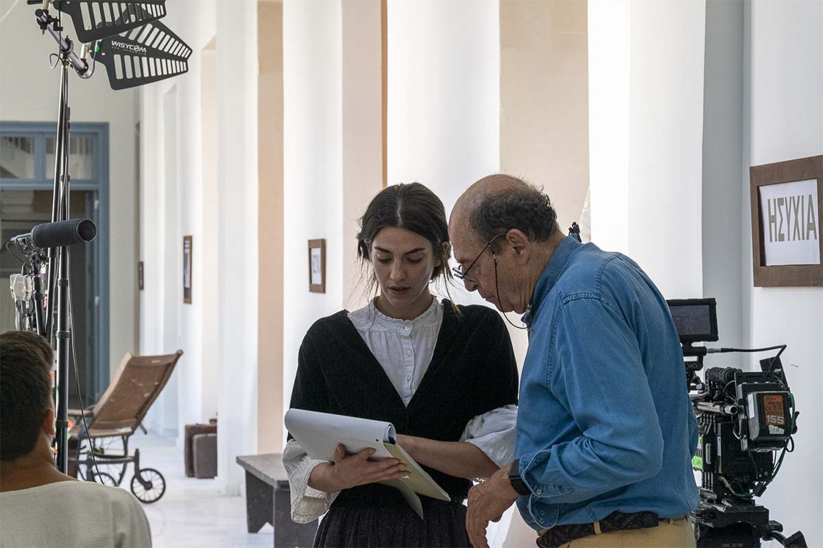 Κοστούμια μιας άλλης εποχής στις κρεμάστρες, κομμώτριες να φτιάχνουν μπούκλες τα μαλλιά της Αναστασίας Παντούση, μακιγιέζ να βάζουν πούδρα ακόμη και στους άνδρες ηθοποιούς για να μη γυαλίζουν από την ανυπόφορη ζέστη, μπουφέδες με καφέδες, κουλουράκια, φρέσκοι χυμοί και κανάτες με κρύο νερό.