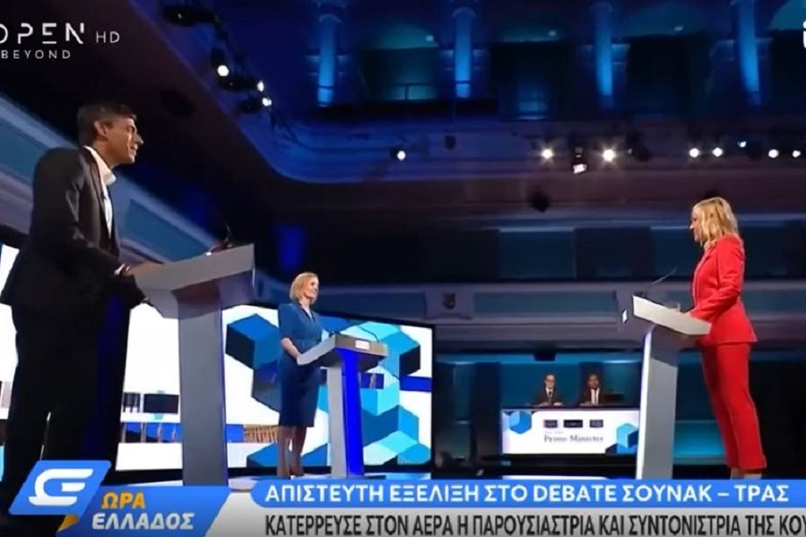 Γινόταν τηλεοπτικό,debate για την ηγεσία των Συντηρητικών μεταξύ της Λιζ Τρας, και του Ρίσι Σούνακ αλλά διεκόπη καθώς η παρουσιάστρια Κέιτ Μακκάν λιποθύμησε στον αέρα.