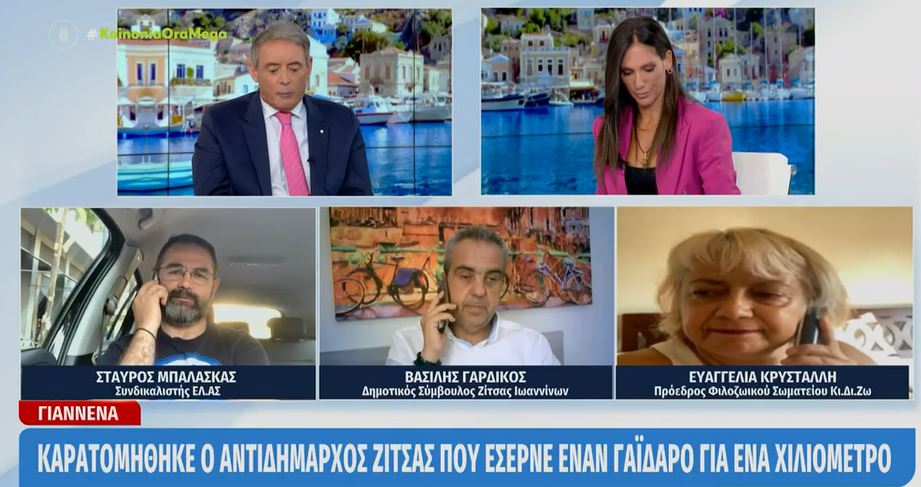 Με αφορμή την κακοποίηση γαϊδουριού από τον αντιδήμαρχος της Ζίτσας, καλεσμένος στην εκπομπή μέσω skype ήταν ο δικηγόρος του, Δημήτρης Δήμου με τον οποίο ήρθε σε αντιπαράθεση η δημοσιογράφος.
