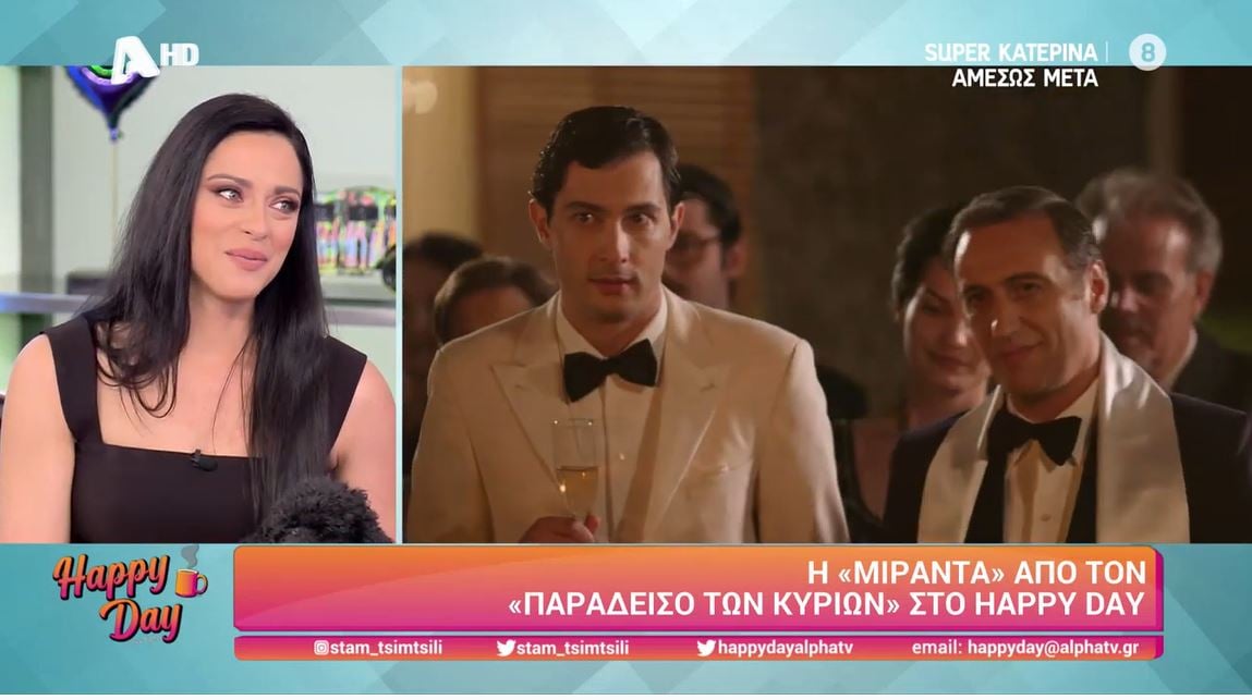 Η Ευαγγελία Συριοπούλου φιλοξενήθηκε στην εκπομπή «Happy Day» το πρωί της Τρίτης και αναφέρθηκε στο ρόλο της στη σειρά «Ο Παράδεισος των κυριών».