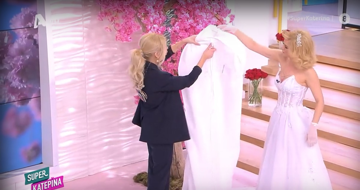 Η Κατερίνα Καινούργιου προλόγισε την καλεσμένη της και ηθοποιό στο πλατό της εκπομπής με εκείνη να μπαίνει φορώντας νυφικό.
