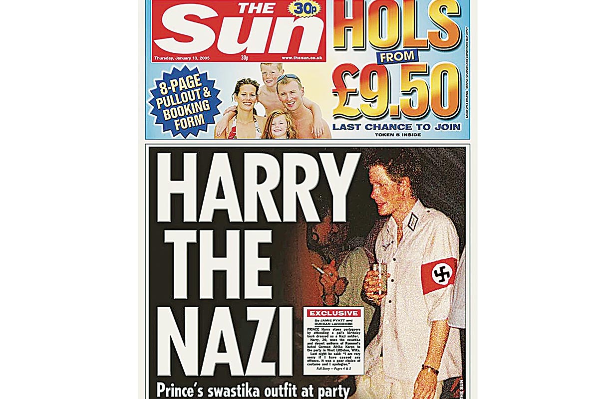 Πρωτοσέλιδο της βρετανικής εφημερίδας στις 13 Ιανουαρίου 2005 αποκάλυπτε φωτογραφία από το πάρτι στην οποία ο Χάρι πόζαρε με τη στολή και μια σβάστικα στο μπράτσο. Εκείνη την εποχή προκλήθηκε σάλος, με το Παλάτι να βγάζει ανακοίνωση με την οποία ζητούσε συγγνώμη για τα καμώματα του νεαρού πρίγκιπα.