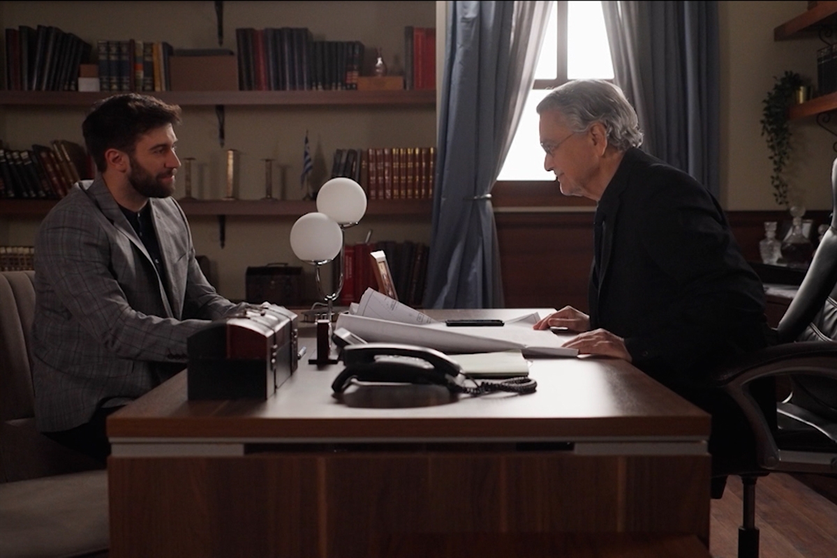 Ο Μάνος και ο Δημοσθένης προσπαθούν στο αποψινό επεισόδιο της σειράς «Η γη της ελιάς» να πείσουν τον Στάθη να αναθεωρήσει τον χωρισμό του με την Ιουλία, αλλά εκείνος είναι ανένδοτος.