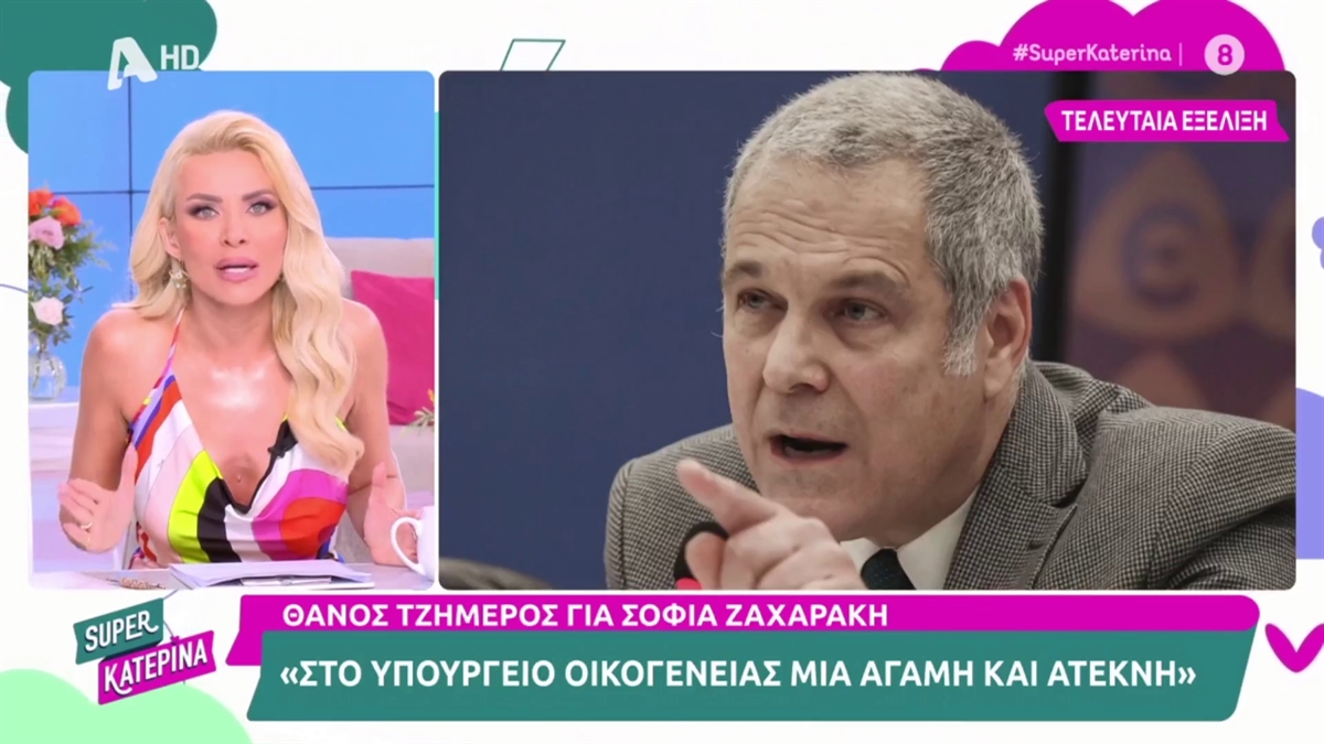 «Το να είναι μία γυναίκα άγαμη και άτεκνη δεν είναι μεμπτό. Είναι όμως μειονέκτημα όταν χειρίζεται θέματα οικογένειας», σχολίασε ο Θάνος Τζήμερος για τη Σοφία Ζαχαράκη.