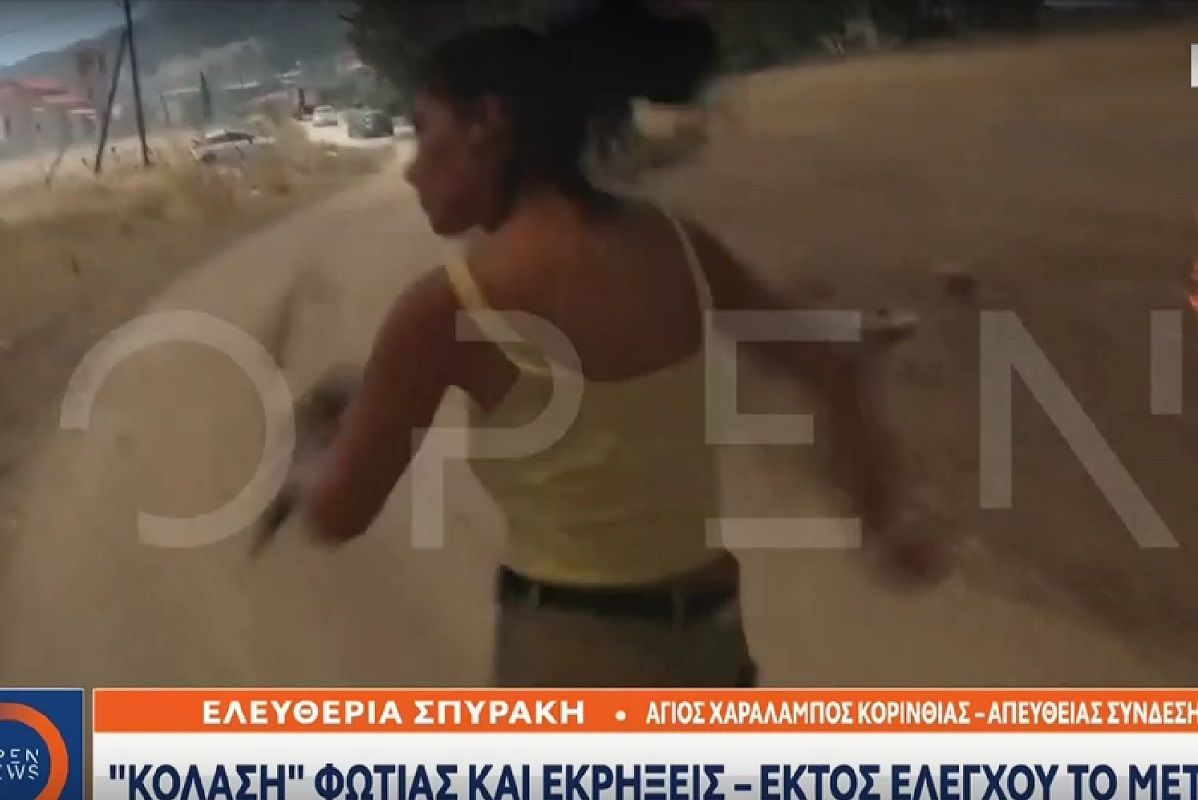 Η ρεπόρτερ του OPEN Ελευθερία Σπυράκη πέρασε δύσκολες στιγμές on air καθώς την περικύκλωσαν οι φλόγες. «Πρέπει να απομακρυνθούμε, Μίνα! Μας κάνουν νόημα να απομακρυνθούμε.