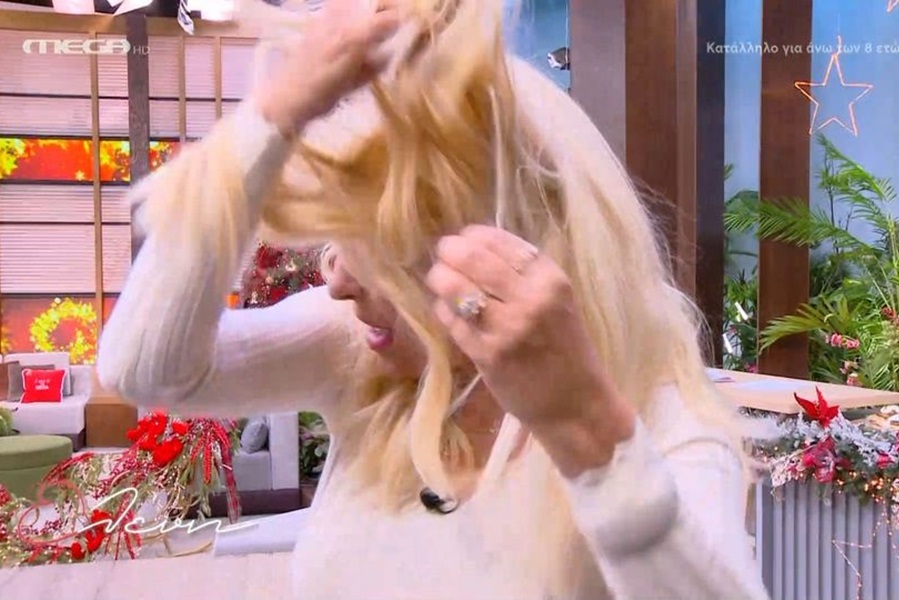 Ελένη Μενεγάκη: Μπλέχτηκε το ακουστικό μέσα στα μαλλιά της on air