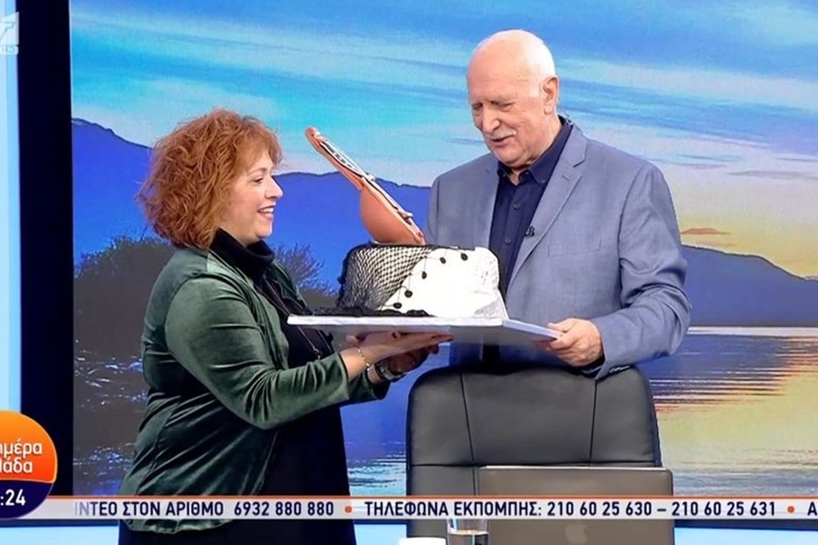 Ο καταξιωμένος παρουσιαστής κατά τη διάρκεια της εκπομπής «Καλημέρα Ελλάδα» το πρωί της Δευτέρας δέχτηκε μια ευχάριστη έκπληξη καθώς του πρόσφεραν μια εντυπωσιακή τούρτα με άρωμα Κρήτης που έγραφε πάνω: «Όσες οι στάλες της βροχής και τα βουνά από τα χιόνια, τόσα πολλά σου εύχομαι ευτυχισμένα χρόνια!». Ο Γιώργος Παπαδάκης έγινε 73 ετών.