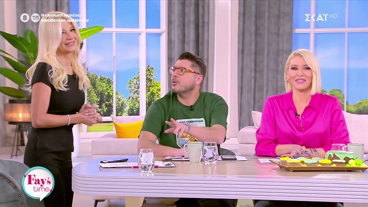 «Μου τη φέρατε σήμερα, είχαν κρυφτεί μέσα στο καμαρίνι για να μου κάνουν έκπληξη. Σας ευχαριστώ πολύ μου φτιάξατε τη διάθεση», συμπλήρωσε. Η παρουσιάστρια σήμερα γίνεται 44 ετών.