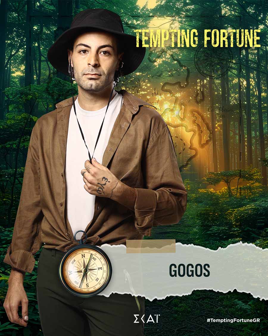 Ο Gogos, όπως συστήνεται, αγαπά τη μουσική και λατρεύει τη μητέρα του. Από μικρή ηλικία του άρεσε ο χώρος της ομορφιάς, γι’ αυτό έγινε κομμωτής. Του αρέσει να ξοδεύει χρήματα για διασκέδαση, αλλά στο παιχνίδι θα προσπαθήσει να μην το κάνει. Με το χρηματικό έπαθλο από το Tempting Fortune, ο στόχος του είναι να ανοίξει ένα κομμωτήριο στην Αθήνα.