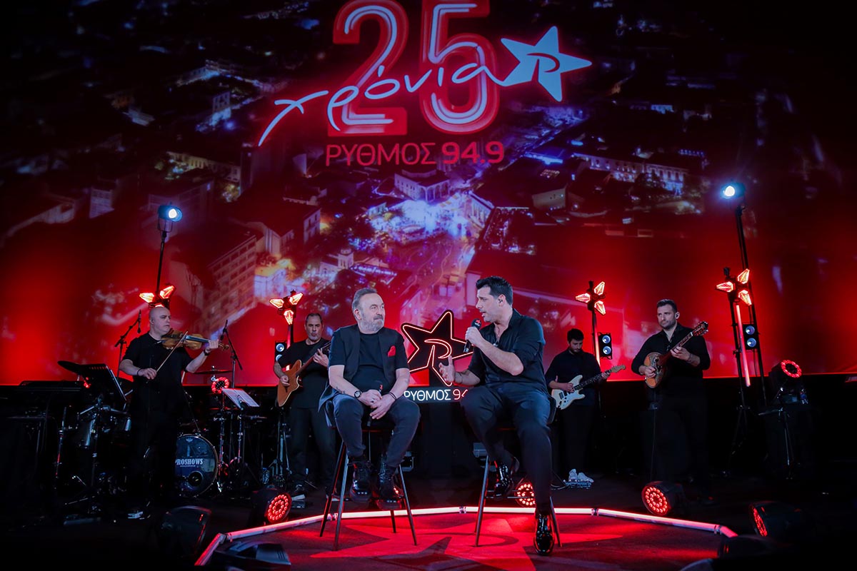 Οι δύο αγαπημένοι καλλιτέχνες ένωσαν τις φωνές τους στο 18ο Exclusive Live Event του ΡΥΘΜΟΥ 94.9 «Πέφτει η νύχτα με… ΡΥΘΜΟ» και έδωσαν τον απόλυτο λαϊκό παλμό στο 2ο εορταστικό Live των 25 χρόνων του ΡΥΘΜΟΥ 94.9! Η μοναδική αυτή μουσική συνάντηση, πραγματοποιήθηκε στη βραβευμένη αίθουσα Vmax Sphera των Village Cinemas στο The Mall Athens, με παρουσιάστρια τη ραδιοφωνική παραγωγό Γιώτα Τσιμπρικίδου.