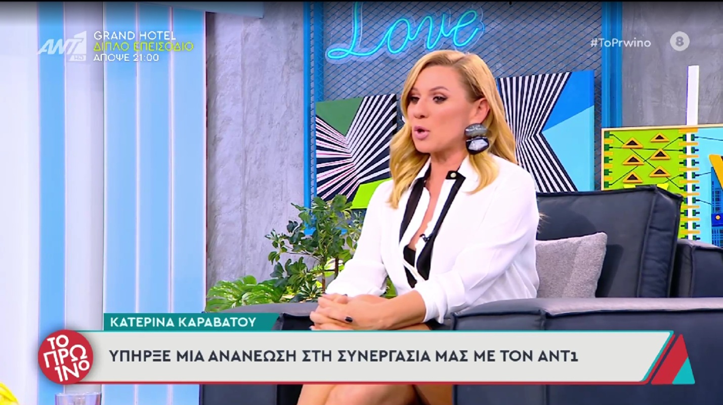 Η Κατερίνα Καραβάτου φιλοξενήθηκε στην εκπομπή «Το Πρωινό» την Τετάρτη λίγες ώρες μετά την επίσημη ανακοίνωση του ΑΝΤ1 πως ανανεώνουν το συμβόλαιό της.