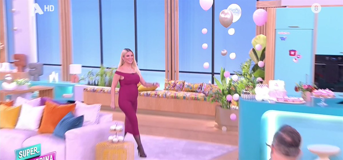 Η Κατερίνα Καινούργιου στην έναρξη της εκπομπής της το πρωί της Δευτέρας εμφανίστηκε για πρώτη φορά με στενό φόρεμα όπου φαινόταν η κοιλίτσα της λίγες ώρες μετά την ανακοίνωση της εγκυμοσύνης της.