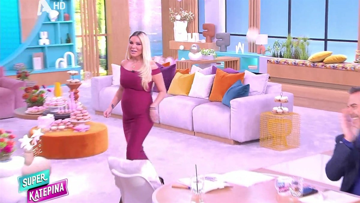 Η Κατερίνα Καινούργιου στην έναρξη της εκπομπής της το πρωί της Δευτέρας εμφανίστηκε για πρώτη φορά με στενό φόρεμα όπου φαινόταν η κοιλίτσα της λίγες ώρες μετά την ανακοίνωση της εγκυμοσύνης της.