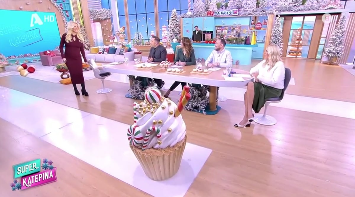 Η Κατερίνα Καινούργιου εμφανίστηκε στην εκπομπή της με ένα κόκκινο φόρεμα και με φουσκωμένη αρκετά πλέον την κοιλίτσα της.