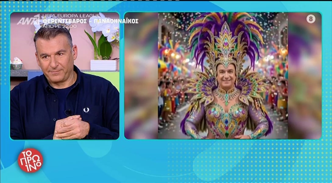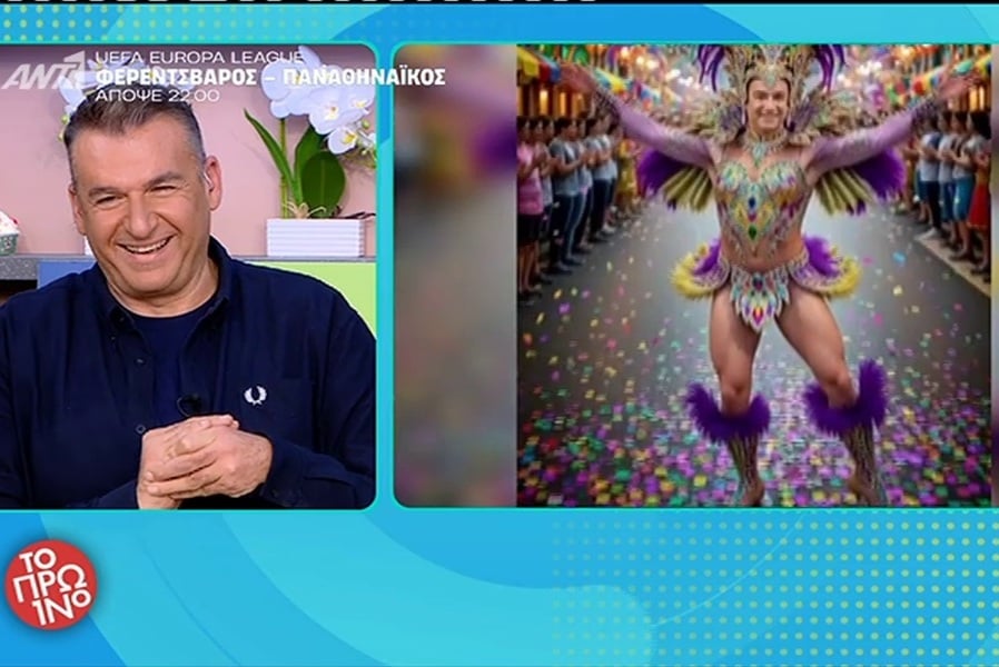 Πρόβαλαν βίντεο μέσω τεχνητής νοημοσύνης με τον ίδιο να χορεύει ως βασίλισσα του Καρναβαλιού. «Κοιτάξτε να δείτε πώς με ξεφτιλίζουν σε αυτήν την εκπομπή. Επειδή πριν είχαμε τη βασίλισσα του Καρναβαλιού και είπα εγώ ότι είχα ντυθεί γυναίκα, ο Μπέζας, που να βρει κανένα θέμα δεν ψάχνει, το μυαλό του είναι μην πω τώρα σε τι…