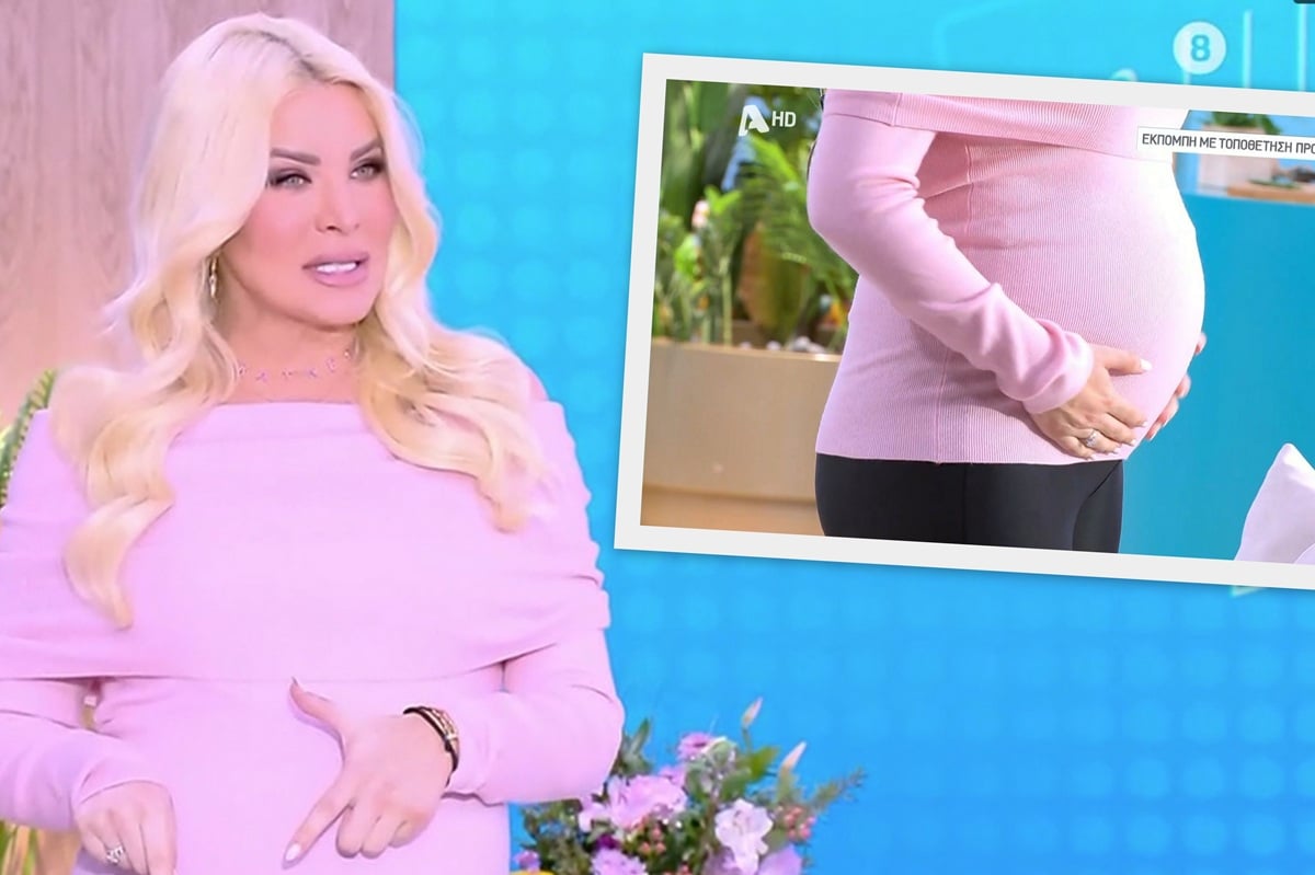 «Κοιτάξτε πώς μεγάλωσε η μπέμπα. Μεγάλωσε πολύ. Τώρα είναι η φάση, με καταλαβαίνουν και οι φίλες, χθες τέλειωσε η εκπομπή και πεταγόταν στη κοιλιά, τη βλέπεις. Φαίνεται το εξογκωματάκι, που πάει και κάθετε στο σημείο.