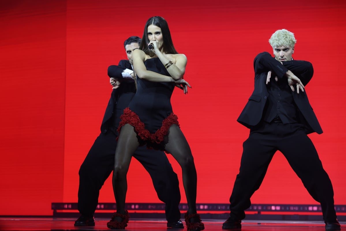 Πριν ανοίξει η κάμερα η περσινή εκπρόσωπός μας έκανε… παιχνίδι με τους παρευρισκόμενους θεατές που τη χαιρετούσαν και τη φωτογράφιζαν εκδηλώνοντας τον θαυμασμό τους προς το πρόσωπό της.