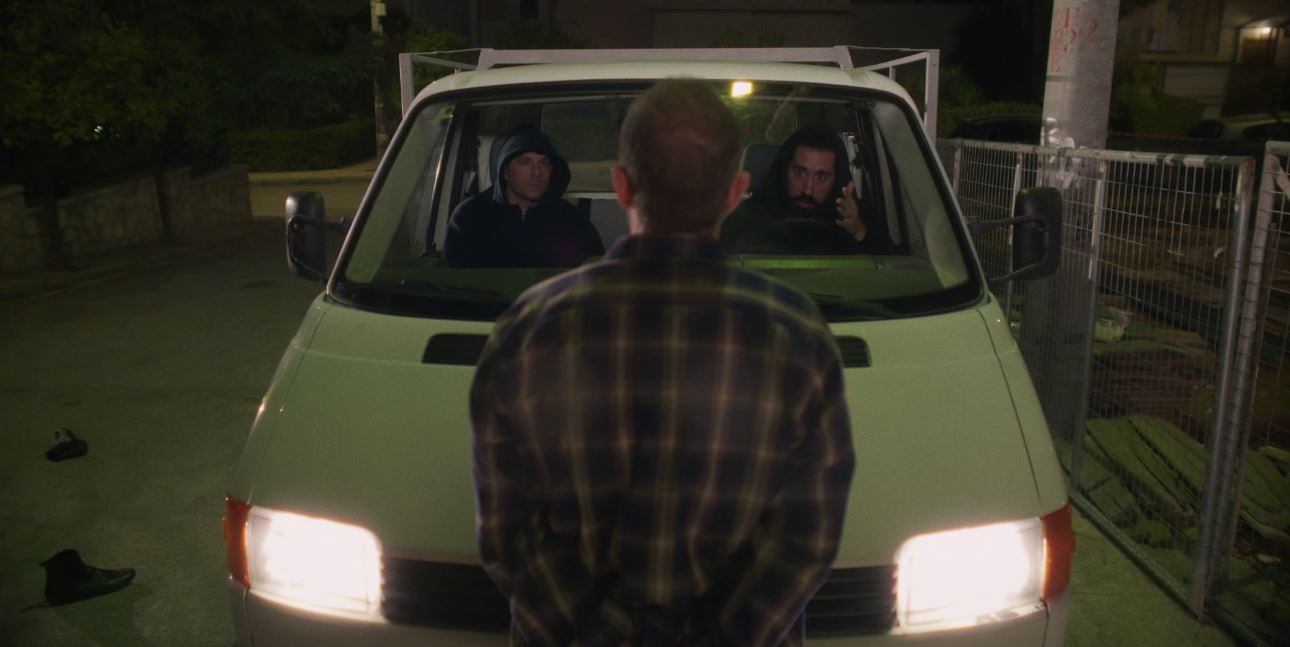 συγκεκριμένα στο δωμάτιο της Σοφίας, από την οποία ζητά να τον αφήσει να κοιμηθεί εκεί κρυφά απ’ την πρώην γυναίκα του.