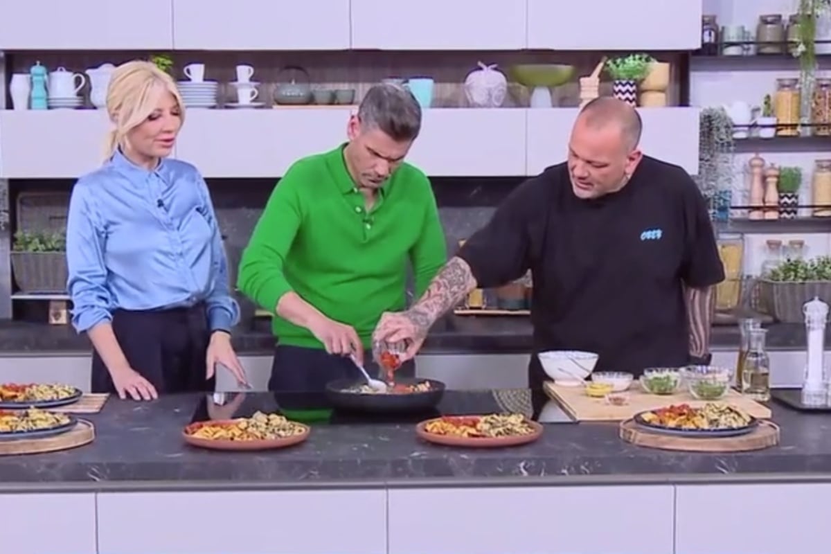 Όλα ξεκίνησαν όταν η παρουσιάστρια προσπαθούσε επίμονα να πείσει τον Δημήτρη Ουγγαρέζο να δοκιμάσει λίγο από το κοτόπουλο. Εκείνος, ωστόσο, επέμενε πως ακολουθεί συγκεκριμένη διατροφή, εξηγώντας ότι «αν φάει τώρα, μετά θα πέσει με τα μούτρα στο φαΐ».