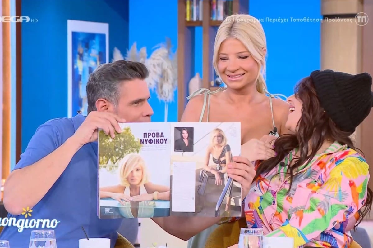 Οι συνεργάτες της δεν έχασαν την ευκαιρία να την «στριμώξουν» με χιούμορ για τον επικείμενο γάμο της με τον Αλέξανδρο Αθανασιάδη. Η αφορμή; Δημοσίευμα-του περιοδικού Hello magazine, που έκανε λόγο για… πρόβα νυφικού!
