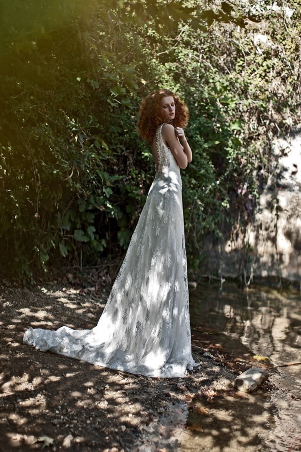 Οι γραμμές της είναι ρομαντικές και οι δημιουργίες της αγκαλιάζουν και αναδεικνύουν μοναδικά τις γραμμές του σώματος κολακεύοντας κάθε γυναίκα και κάνοντάς την να δείχνει ακόμα πιο υπέροχη την πιο όμορφη ημέρα της ζωής της.