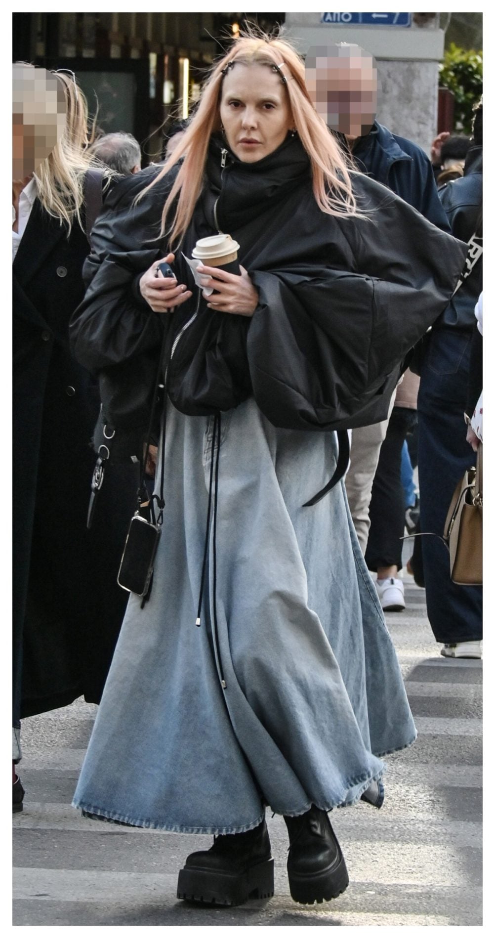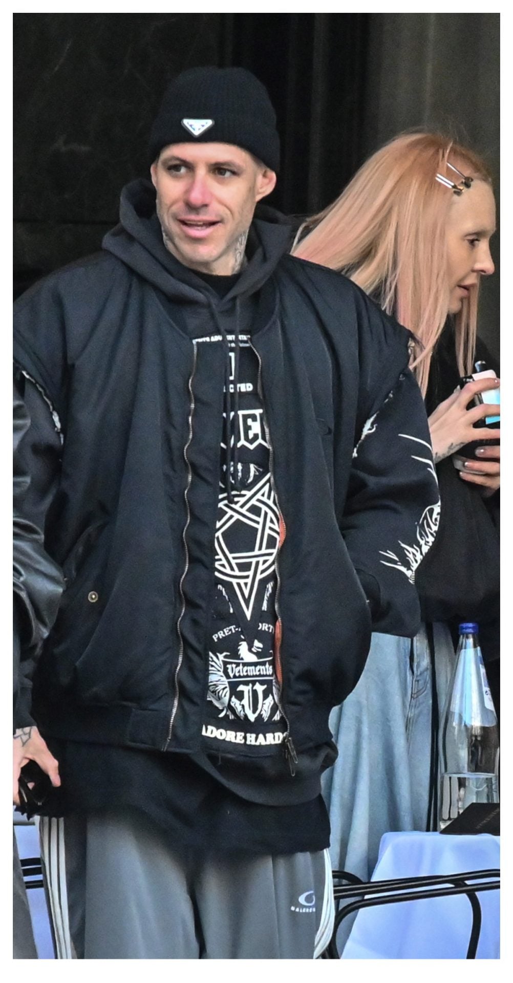 Επέλεξε να φορέσει ένα oversized μαύρο jacket με έντονο όγκο, συνδυάζοντάς το με μία maxi τζιν παντελόνα σε φαρδιά γραμμή. Για να τελειοποήσει το στυλ της, η Τάμτα διάλεξε μαύρα γυαλιά ηλίου, clips στα μαλλιά και μαύρα μποτάκια με πλατφόρμα ενώ ο σύντροφός της, προτίμησε να κινηθεί σε ένα πιο casual look, με φόρμα, φούτερ και σκουφάκι.
