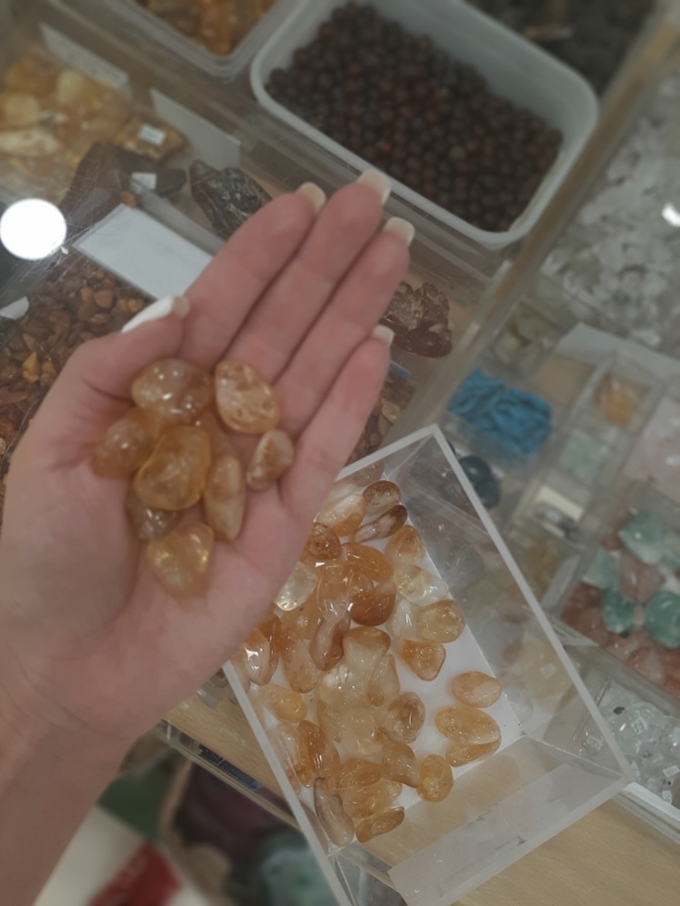 Λάτρεψα τα δόντια καρχαρία, ενθουσιάστηκα με το ροζ χαλαζία που προσελκύει αγάπη, αλλά και τη μαύρη πέτρα που συμβολίζει προστασία από κακή ενέργεια.