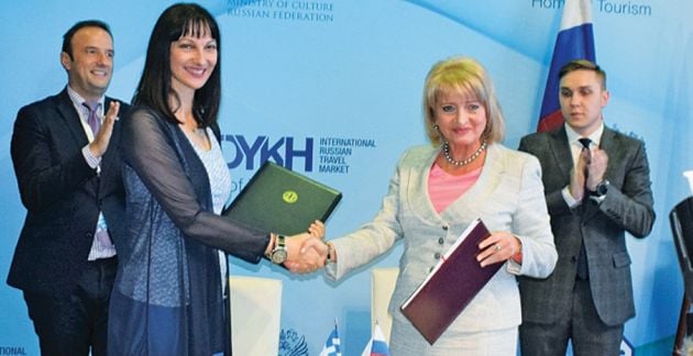 Η ωραία υπουργός Ελενα Κουντουρά έγινε «κόκκινη»! Πήγε στη Μόσχα και κήρυξε την επίσημη έναρξη του Eτους Τουρισμού Ελλάδας – Ρωσίας 2017-2018. Ηταν μαζί με την ομόλογό της, υφυπουργό Πολιτισμού αρμόδια για τον τουρισμό Αλα Μανίλοβα. Οι δύο γυναίκες έδωσαν τα χέρια για τη συνεργασία των δύο χωρών στον τουρισμό και, όπως φαίνεται, η ομορφιά στις υπηρεσίες της πολιτικής κάνει θαύματα. Αλλωστε, οι Ρώσοι αποτελούν «αιμοδότη» του τουρισμού μας.