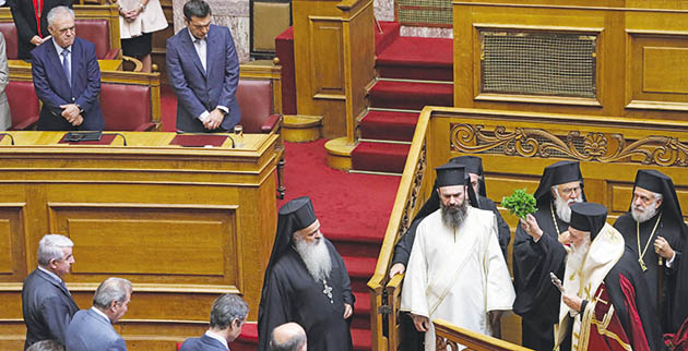 «Ευλόγησον τη σύνοδο αυτή» είπε ο Αρχιεπίσκοπος Aθηνών και Πάσης Ελλάδος Ιερώνυμος κατά τη διάρκεια του αγιασμού στην Ολομέλεια της Βουλής, αλλά κανείς μα κανείς υπουργός δεν έκανε τον σταυρό του.