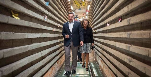 Στην επίσκεψή του στο Μουσείο Πλινθοκεραμοποιίας, το οποίο στεγάζεται σε παλιό εργοστάσιο της πόλης, είδε (λέει) όλα τα στάδια της παραγωγής διαφορετικών τύπων τούβλων και κεραμιδιών, που αναδεικνύουν την ιστορική ταυτότητα του Βόλου και τη βιομηχανική κληρονομιά του. Ωραία ιδέα και μοντέρνα φωτογράφιση, όπως διαπιστώνουμε.