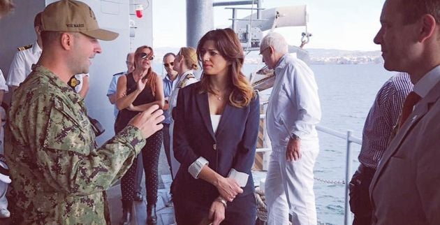 Ο λόγος φυσικά για την Κατερίνα Νοτοπούλου, υφυπουργό Μακεδονίας – Θράκης, η οποία πάτησε το πόδι της χθες στο πολεμικό πλοίο «USS Mount Whitney», που είναι αραγμένο στον Θερμαϊκό.
