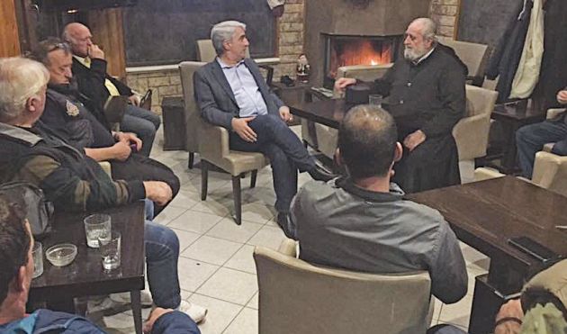 ❱❱Φουντώνει για τα καλά το προεκλογικό κλίμα, ακριβώς όπως έχει φουντώσει η φωτιά στο τζάκι πλάι στον Σίμο Κεδίκογλου. Οι βουλευτές όλων των κομμάτων, συνεχίζοντας την τακτική που εγκαινίασαν στις προηγούμενες εκλογές, δηλαδή το πόρτα πόρτα και το καφενείο καφενείο, έχουν εκδράμει για να μιλήσουν στον κόσμο. Το κάνουν όλοι, αλλά εμείς διαλέξαμε τον βουλευτή Ευβοίας της Ν.Δ. και τη φολκλόρ εικόνα του, να κάθεται δίπλα στο αναμμένο τζάκι στο χωριό Παλιούρα και να συζητάει με τον ιερέα του χωριού.