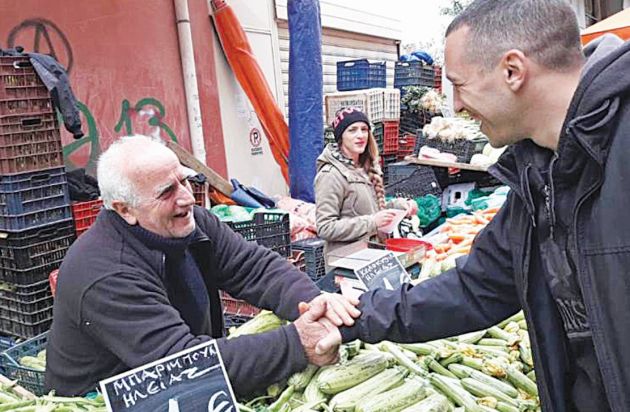 Λαϊκή πήγε και ο «σκληρός της Χρυσής Αυγής», υποψήφιος για τον Δήμο της Αθήνας, Ηλίας Κασιδιάρης. Μόνο που χαιρετάει μόνο τους Ελληνες παραγωγούς…