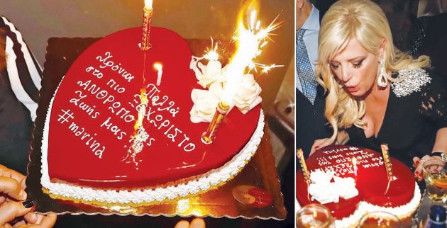 Η τούρτα, άλλωστε, που παρήγγειλαν εκείνος και ο γιος τους Αλέξανδρος τα έλεγε όλα: «Χρόνια πολλά στον πιο ξεχωριστό άνθρωπο της ζωής μας». Η Μαρίνα έλαμπε μέσα στο μαύρο μίνι φόρεμά της, το οποίο είχε συνδυάσει με ασημένια σκουλαρίκια. «My style rocks» υπό τους ήχους του «Happy birthday», λοιπόν, για την εορτάζουσα!