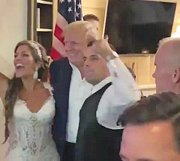 «Τραμπ, Τραμπ, Τραμπ!», αλλά και «ΗΠΑ, ΗΠΑ, ΗΠΑ!» φώναζαν, ενώ ο πρόεδρος των ΗΠΑ δεν παρέλειψε να φιλήσει τη νύφη και να ευχηθεί στο ζευγάρι «βίο ανθόσπαρτο».