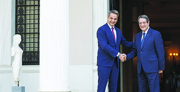 ❱❱ Στη σκιά των προκλήσεων της Τουρκίας στην κυπριακή ΑΟΖ και την Αμμόχωστο, Κυριάκος Μητσοτάκης και Νίκος Αναστασιάδης είχαν την πρώτη τους συνάντηση μετά την εκλογική νίκη της Ν.Δ. στο Μαξίμου