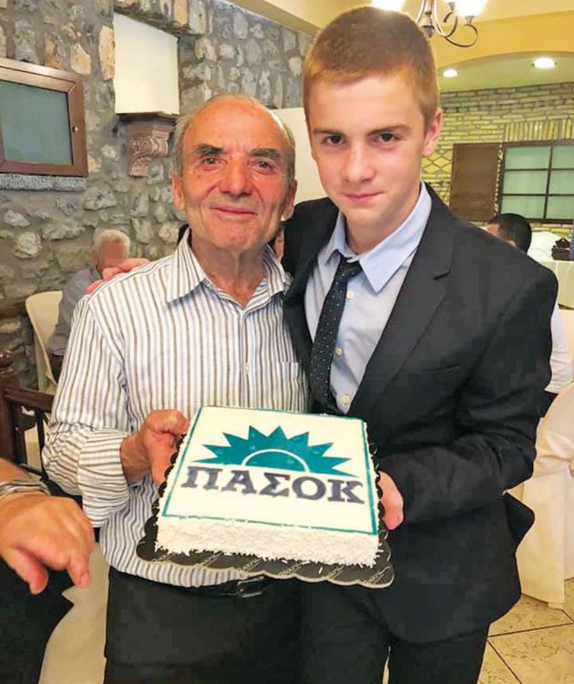 Η βάπτιση έγινε στο χωριό Βλαχέρνα της Αρκαδίας και, μόλις ολοκληρώθηκε το μυστήριο, να σου φτάνει και η τούρτα με τον ήλιο του ΠΑΣΟΚ φαρδύ πλατύ, αφήνοντας άναυδους τους καλεσμένους. Ο πατέρας του Οδυσσέα και ο γιος του ο Γιώργος (φωτό) ήταν στην «παραλαβή» της «πράσινης, σοσιαλιστικής τούρτας».