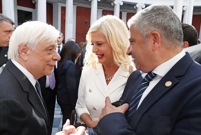 Ο Πρόεδρος της Δημοκρατίας, ο Γιώργος Πατούλης και η σύζυγός του είχαν και μια ολιγόλεπτη κουβεντούλα στο παρασκήνιο. Η Μαρίνα, λαμπερή μέσα στο λευκό της κοστούμι, χαιρέτησε θερμά τον κ. Παυλόπουλο κι ύστερα περπάτησε αλά μπρατσέτα με τον σύζυγό της στο προαύλιο του Ζαππείου.