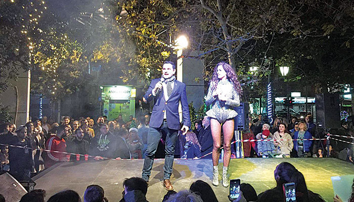 Οι κάτοικοι διασκέδασαν μαζί της, ρίχνοντας κλεφτές ματιές και στο μπαλέτο που συνόδευε την τραγουδίστρια, με τις λεωφόρους Αγίων Αναργύρων και Δημοκρατίας, που διέρχονται την πλατεία του δήμου, να παίρνουν φωτιά.