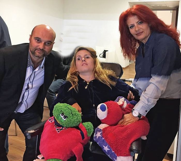 «Πριν από δυόμισι χρόνια φύγαμε από το Κέντρο Αποκατάστασης στο οποίο είχαμε περάσει πέντε χρόνια. Ύστερα από πολλές θεραπείες σήμερα βλέπουμε μια κάπως ανοδική πορεία. Η Μυρτώ μπορεί και γελάει. Ένα ταξίδι στη Ρωσία θα μας δώσει κάτι παραπάνω» είπε συγκινημένη η μητέρα του 22χρονου κοριτσιού, παρουσία του δημάρχου και του ηθοποιού.