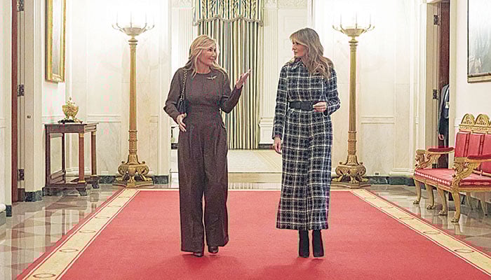 Η Μαρέβα εμφανίστηκε με τσαντάκι Chanel και σοκολά jumpsuit αλλά και μπότες στην ίδια απόχρωση, και η Μελάνια με μακρύ καρό ασπρόμαυρο Chanel jumpsuit συνοδευόμενο από μαύρη ζώνη με φαρδιά αγκράφα. Δηλαδή σωστό «My style rocks» στον Λευκό Οίκο.