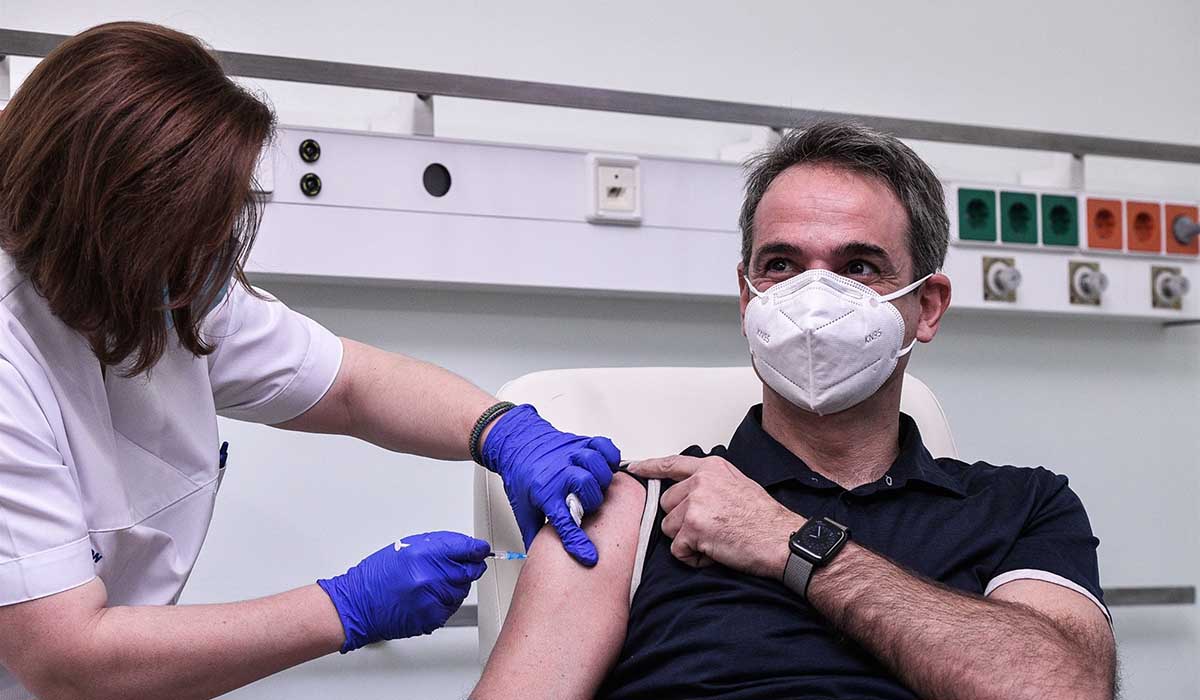 Τη σκυτάλη πήρε ο πρωθυπουργός Κυριάκος Μητσοτάκης, ο οποίος εμφανίστηκε με casual ντύσιμο στις 14.30 στο νοσοκομείο «Αττικόν». Παρών σε όλη τη διάρκεια του εμβολιασμού του πρωθυπουργού ήταν ο λοιμωξιολόγος Σωτήρης Τσιόδρας, ο οποίος κατά την προετοιμασία του έλυνε τις πολλές απορίες που εξέφραζε ο πρωθυπουργός, μέχρι να σηκώσει το μανίκι από το κοντομάνικο μπλουζάκι του και να εμβολιαστεί.