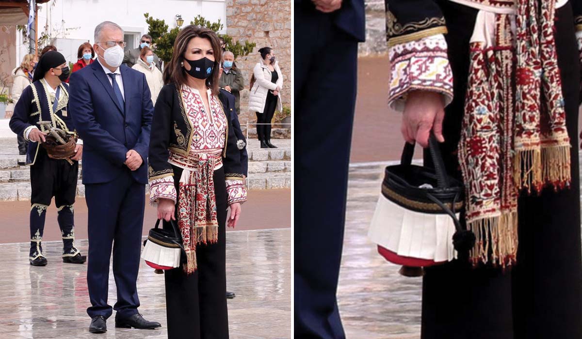 Μεταξύ σοβαρού και αστείου τώρα, καλή η σκέψη της προέδρου Αγγελοπούλου να φορέσει κάτι που θα ξεχώριζε στις γιορτές της Αρεόπολης, στη Μάνη, από όπου άρχισε η Επανάσταση, αλλά, κατά τη γνώμη μας, υπερέβαλε.